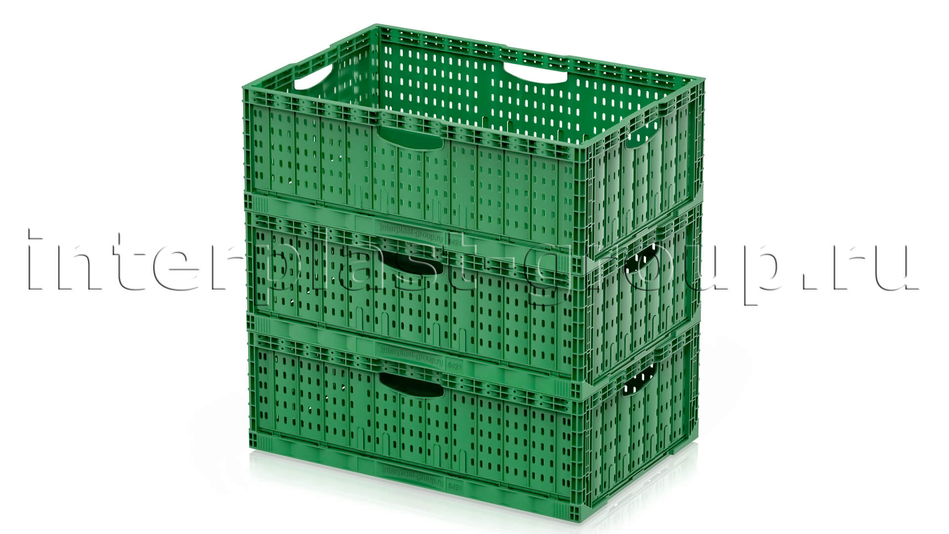 Складные ящики разработаны и спроектированы для хранения и перемещения плодо-овощных культур как внутри производства, так и между торговыми точками и складами. Благодаря функции складывания значительно экономят место при использовании в качестве возвратной тары. Перфорированные стенки обеспечивают сохранение свежести и сочность продуктов перфорации абсолютно на всех стадиях логистики. Штабелируются на паллетах 1200х1000 и 1200х800.